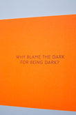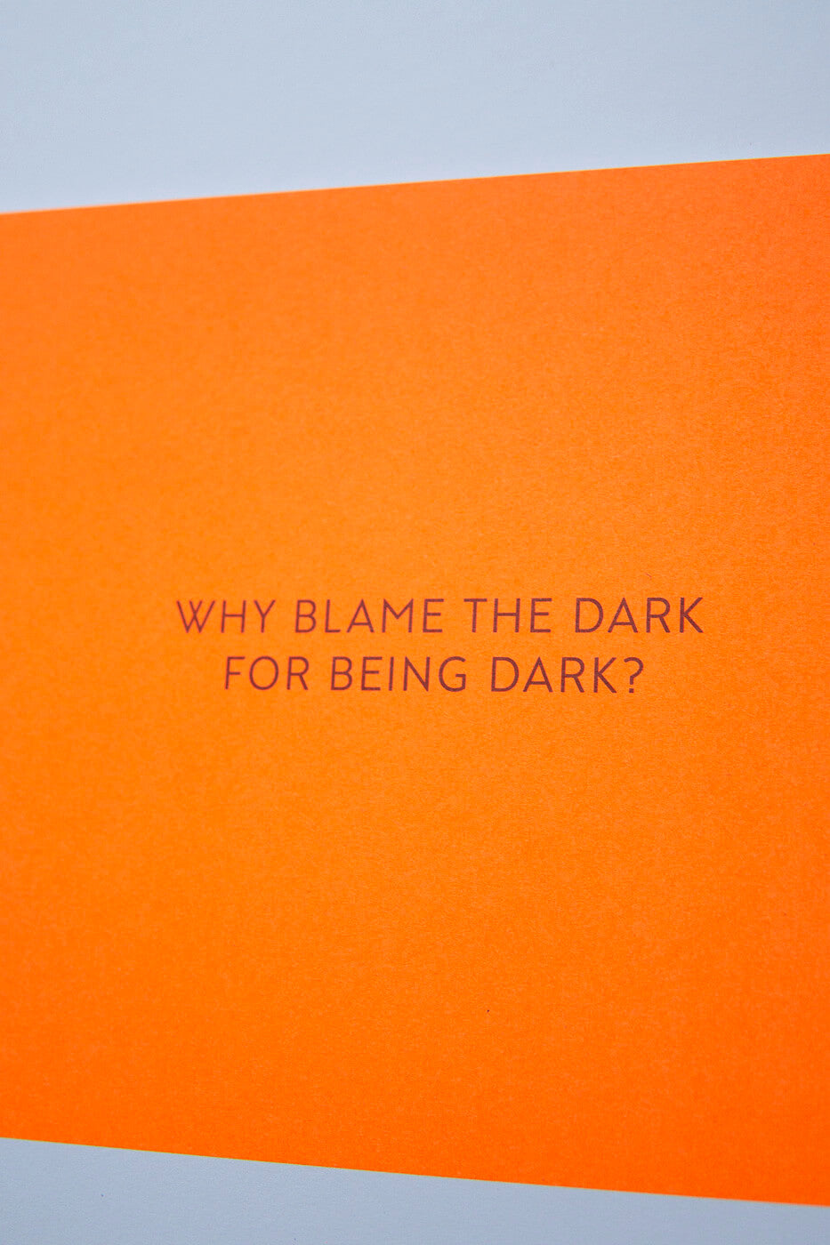 "Vor Jahren habe ich einmal ein Zitat* gelesen, das mit den Worten beginnt: ›Why blame the dark for being dark?‹ Warum sich bei der Dunkelheit beschweren, dass sie dunkel ist? Ist es nicht eher eine Frage, warum das Licht nicht heller ist?