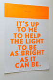 Das Plakat HELP THE LIGHT ist ein leuchtender Reminder dafür, seine konstruktiven Kräfte zu wecken und selbst einen Beitrag zu leisten.